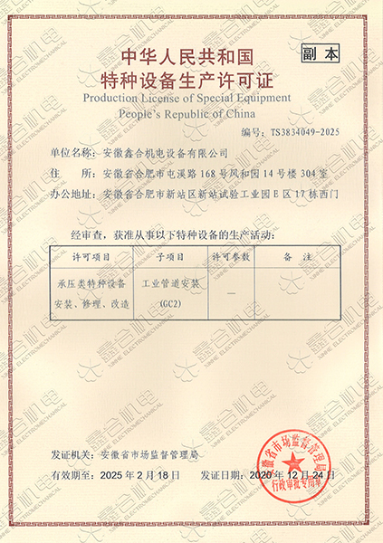 目前我公司具有建筑機(jī)電安裝工程專業(yè)承包一級資質(zhì)、總承包二級、GC2壓力管道設(shè)計、施工資質(zhì)?,F(xiàn)有高級工程師5名、高級技師55名、工程師22名、助工25名、技術(shù)員22名、各類專業(yè)技師50多名,強(qiáng)大的技術(shù)力量及精良的施工隊伍,為客戶提供全方位服務(wù)。 公司本著“一切為了用戶”的經(jīng)營理念,“以品質(zhì)求生存、以誠信贏市場、以管理促發(fā)展”為要求,努力為廣大客戶提供專業(yè),優(yōu)質(zhì)、高效的服務(wù)。
